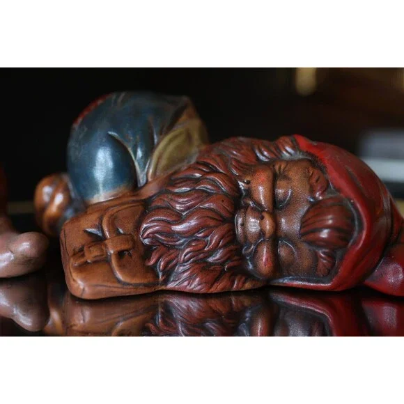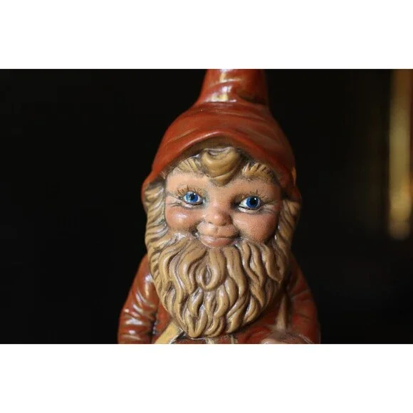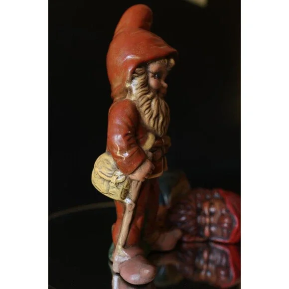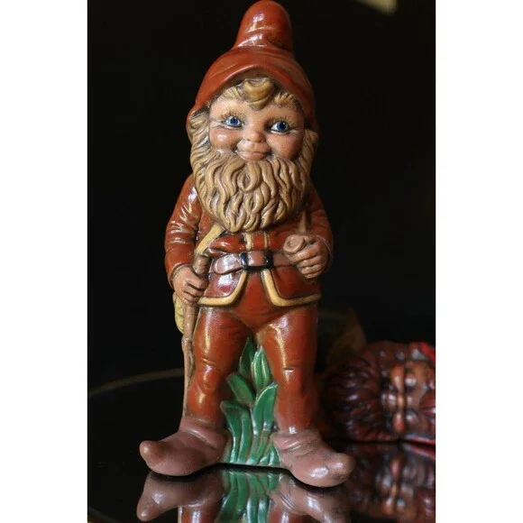 2 Vintage 70's Hand Painted Garden Gnomes Sleepy Cute Pixie Cottagecore Elf MCM