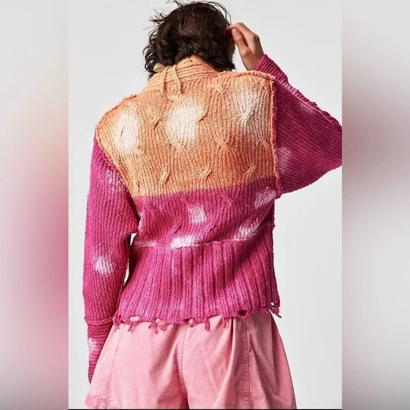 Style No. 81564213; Color Code:Sure to be a staple in your sweaters collection, this super cool, tie-dyed cardigan is featured in a zip-front silhouette with ribbed knit detailing, raw seaming, and defined distressing at bottom for a true lived-in look.Fit: Classic, relaxed fitFeatures: Zip-front closure, dropped shoulders, slight dolman sleeves, defined bottom hem, exaggerated seamingWhy We <3 It: The perfect throw-on-and-go piece to pair with any style, this cool cardigan adds effortless edge to absolutely any ‘fit.Care/ImportHand Wash ColdImportMeasurements for size smallBust: 36 inLength: 20.25 inSleeve Length: 22.5 in